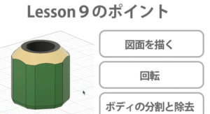 鉛筆型のペンたての仕上げは「回転」コマンドで形状を完成させます。 また、鉛筆型にカットするため「ボディの分割」 […]