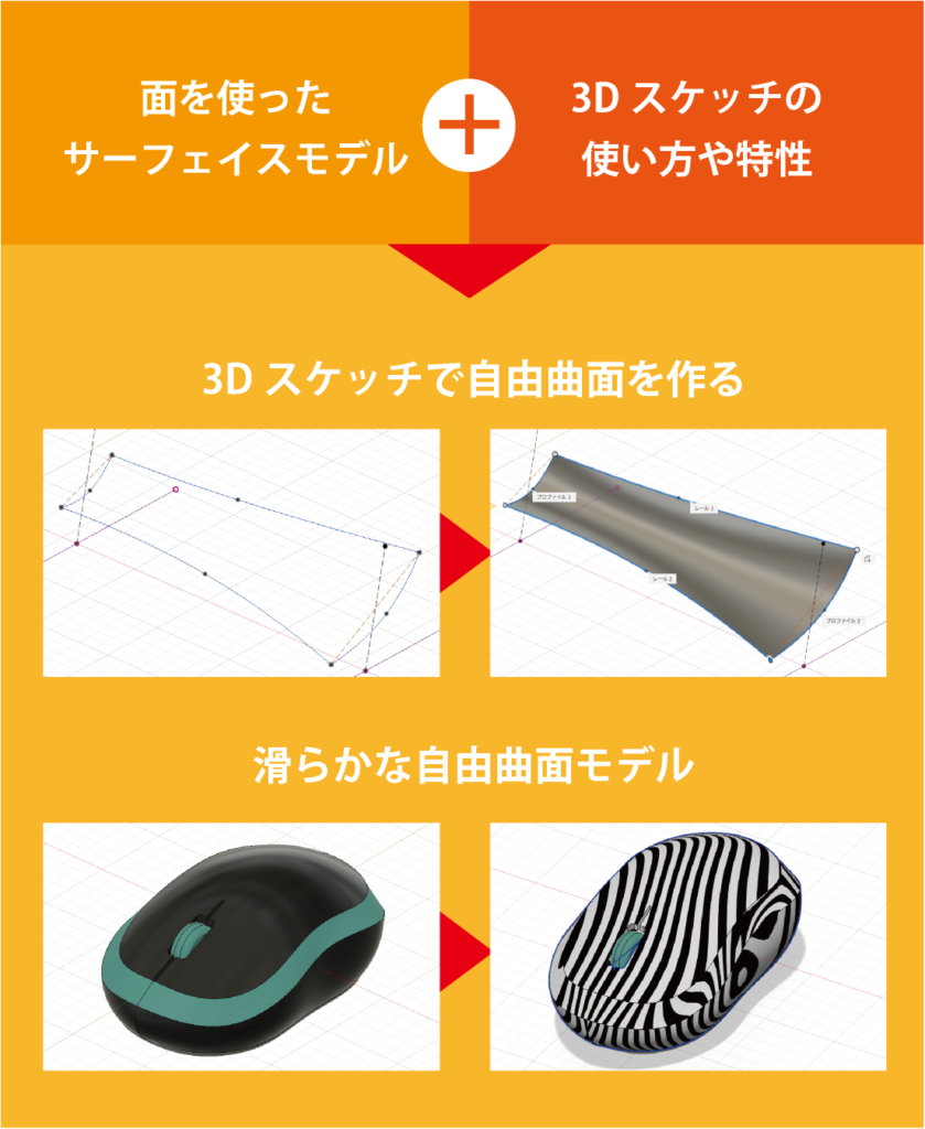 Fusion360では、面を使って3D形状を作るサーフェイスモデリング機能が用意されています。通常のモデリングに比べて、マウスのような自由曲面デザインに向いているのが特徴です。本講座は、最初は取っ付きずらいサーフェイスや3Dスケッチを基礎から手順を追って学べる内容となっています。